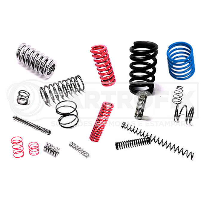Molas de compressão helicoidais paralelas, cônicas, bi-cônicas com diâmetros de arame até 10,00 mm em aço de diversas ligas, em diferentes formas mediante desenho técnico, especificações ou amostra.