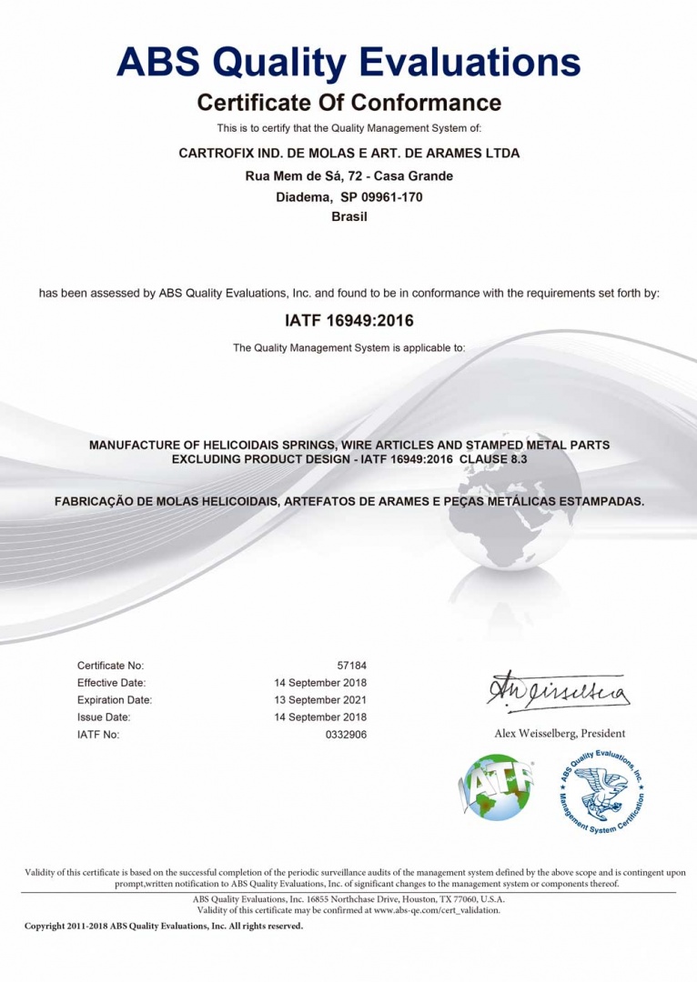 Certificada pelas normas ISO 9001:2015 e IATF 16949:2016, a Cartrofix se tornou referência no mercado e sinônimo de qualidade e confiança.